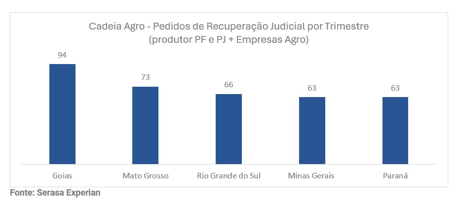 No segundo trimestre de 2025, cinco estados se destacaram pela concentração de pedidos de recuperação judicial no agronegócio.
