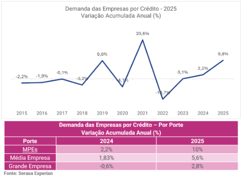 • Micro e pequenas empresas registraram crescimento de 10% na demanda por crédito em 2025;