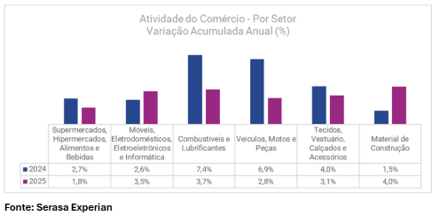 Camila ressalta que o desempenho setorial reflete diferenças na dependência de crédito e no perfil de consumo ao longo do ano. “Segmentos menos sensíveis ao custo do crédito ou ligados a demandas mais estruturais conseguiram sustentar melhor o ritmo de crescimento, enquanto outros sentiram mais os efeitos do aperto monetário.”