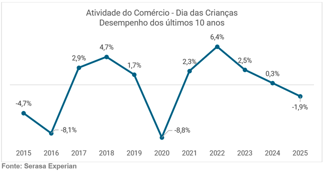 Dia das Crianças 2025: atividade do varejo físico recua 1,9% na semana da data, mostra Serasa Experian