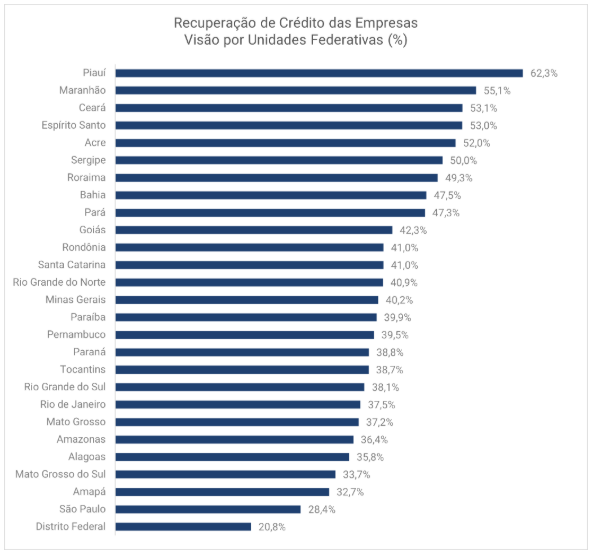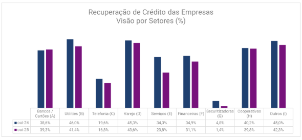 • Entre os setores analisados, “Varejo” registrou a maior taxa de recuperação, com 43,6%;