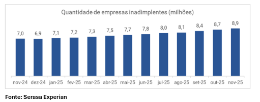 Novo recorde: Inadimplência alcança 8,9 milhões de empresas brasileiras em novembro com R$ 210 bilhões em dívidas, aponta Serasa Experian