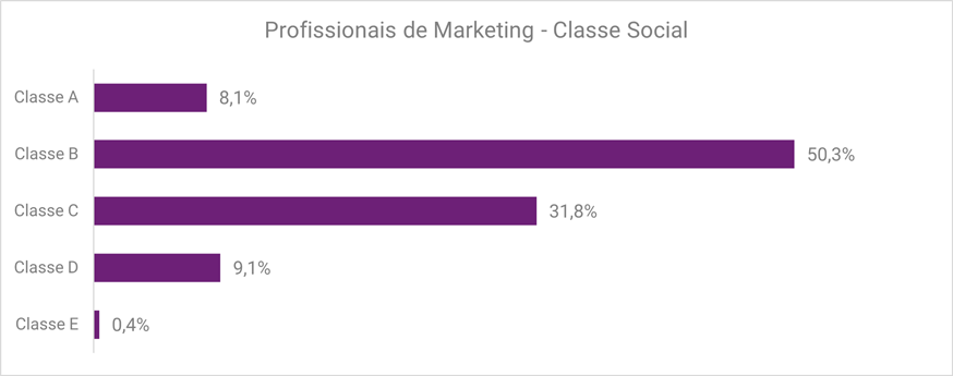 A análise socioeconômica indica predominância de profissionais da classe B (50,3%), seguida pela classe C (31,8%). As classes D e A representam 9,1% e 8,1%, respectivamente. Veja o detalhamento dos dados no gráfico abaixo: