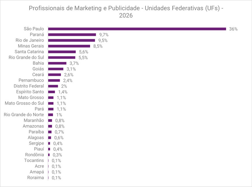 Os profissionais de marketing e publicidade estão predominantemente em São Paulo