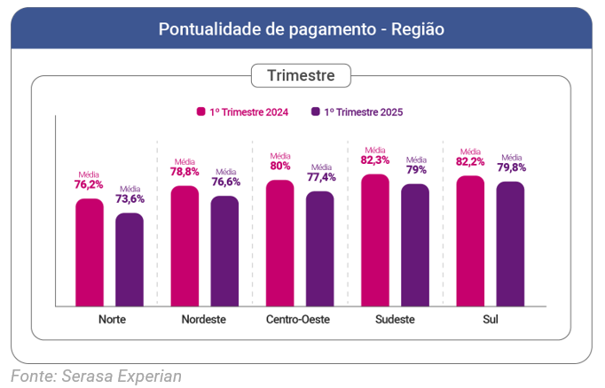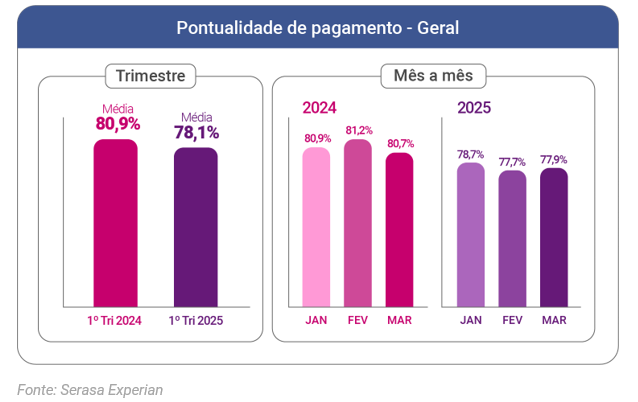 Cartão de crédito: pontualidade média de pagamento cai de 80,9% para 78,1% no comparativo entre o primeiro trimestre de 2024 e 2025, revela Serasa Experian