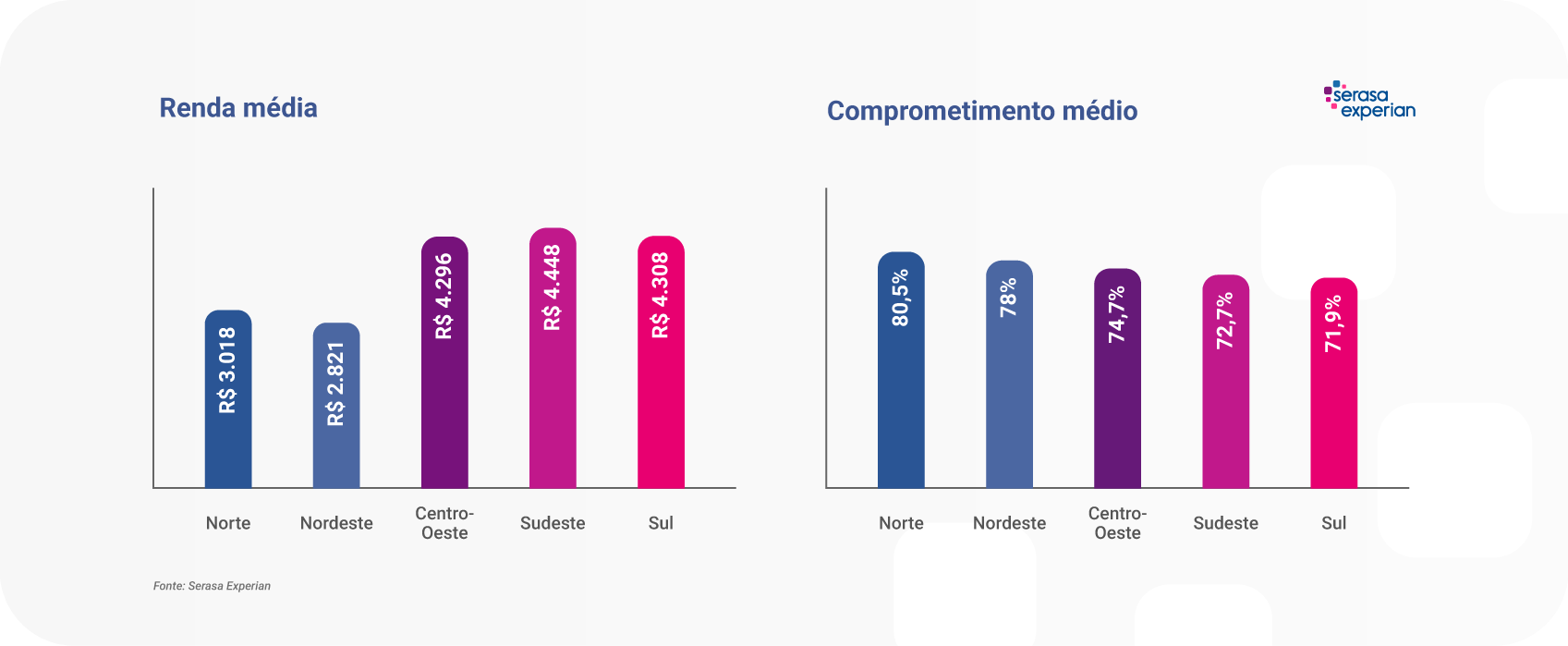 Na prática, isso significa que as regiões com menor renda são aquelas que destinam uma parcela maior do orçamento ao pagamento de despesas financeiras, reduzindo a margem disponível para consumo, poupança ou absorção de imprevistos.